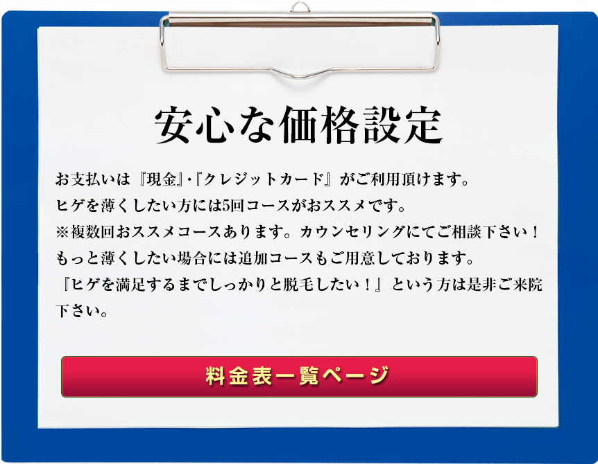 ※剃毛はなるべくご自身で行って下さいますよう、ご協力お願い致します。