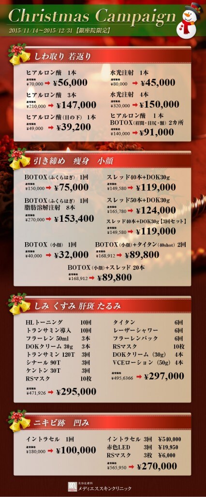 しわ取り、引き締め、痩身、小顔などたくさんのメニューが期間限定プライス! このキャンペーンをお見逃しなく。