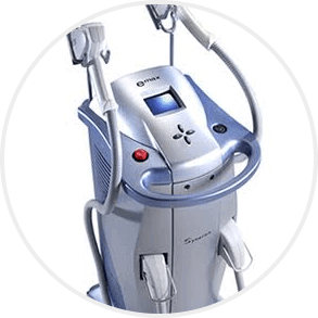 | 色素斑の改善・ 美白効果 | 光エネルギーにより、メラニン量が相対的に多い色素斑を含む表皮に熱を加えることで得られる効果です。 RFは光エネルギーを補うように働きます。正常な表皮はクーリングされて守られています。 |