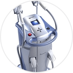 | 色素斑の改善・ 美白効果 | 光エネルギーにより、メラニン量が相対的に多い色素斑を含む表皮に熱を加えることで得られる効果です。 RFは光エネルギーを補うように働きます。正常な表皮はクーリングされて守られています。 |